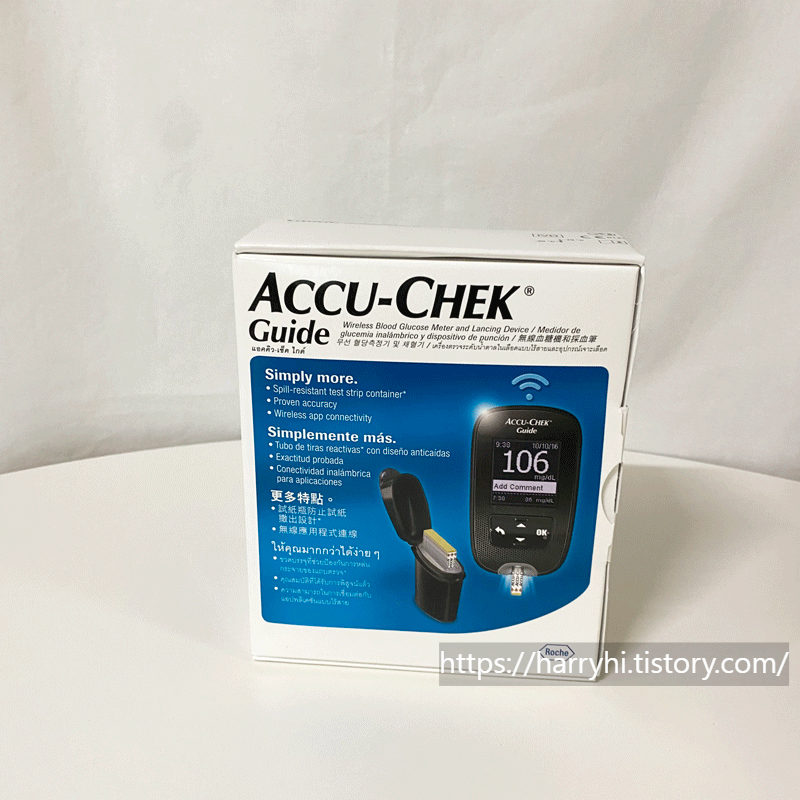 검색해 보니 아큐첵 가이드나 인스턴트 제품을 많이 사용 중인 것 같았는데요. 가이드 제품이 좀 더 후기가 좋아 보여서 선택했어요.